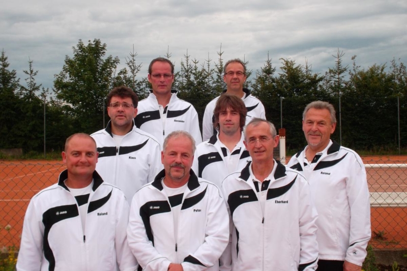 Die Tennismannschaft der Herren 40 des TC Unterschneidheim erreichte mit fünf Siegen gegen Eislingen, Wasseralfingen, Ebnat, Giengen und Untergröningen den 2. Platz in der Kreisklasse 1. Nach dem Aufstieg im letzten Jahr, konnte man an den Erfolg weiter anknüpfen und dieses Mal in die Bezirksklasse 2 aufsteigen. Am Erfolg beteiligt waren (von links, unten): Karl-Roland Kuhnhaus, Peter Frick, Eberhard Ziegler, Roland Holzinger, Klaus Zeller, Helmut Dischinger, Alexander Gentner und Mannschaftsführer Peter Konle.